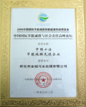 • 2009年3月在胡錦濤、溫家寶等中央領導出席的中國國際節能減排與新能源科技博覽會和高峰論壇上評為“中國十佳節能減排先進企業”。